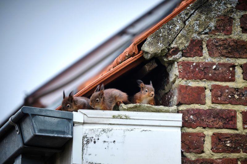 - Points d’accès au toit et au grenier : Attractés par l’air chaud qui monte vers le toit ou le grenier, les oiseaux, les écureuils et les souris peuvent trouver leur chemin à travers des bardeaux décollés, des évents de grenier ou une cheminée non coiffée.